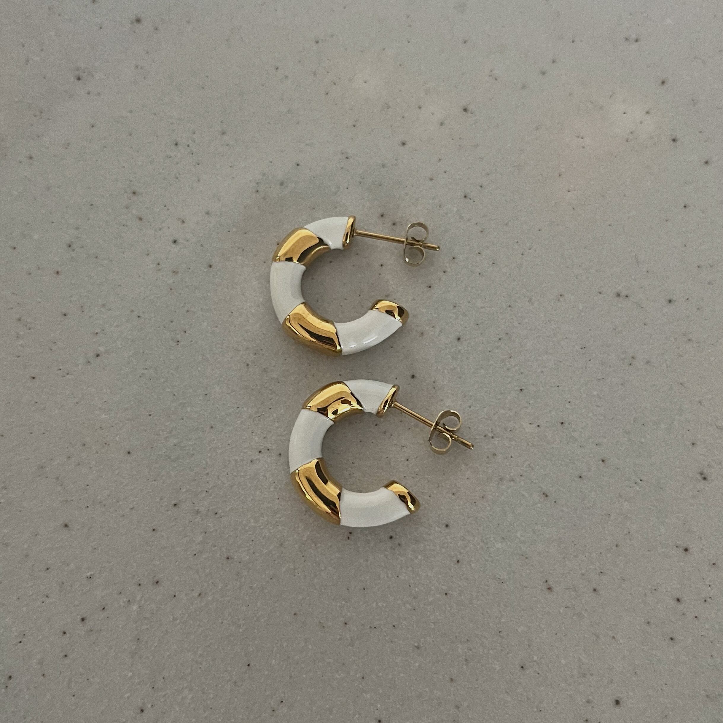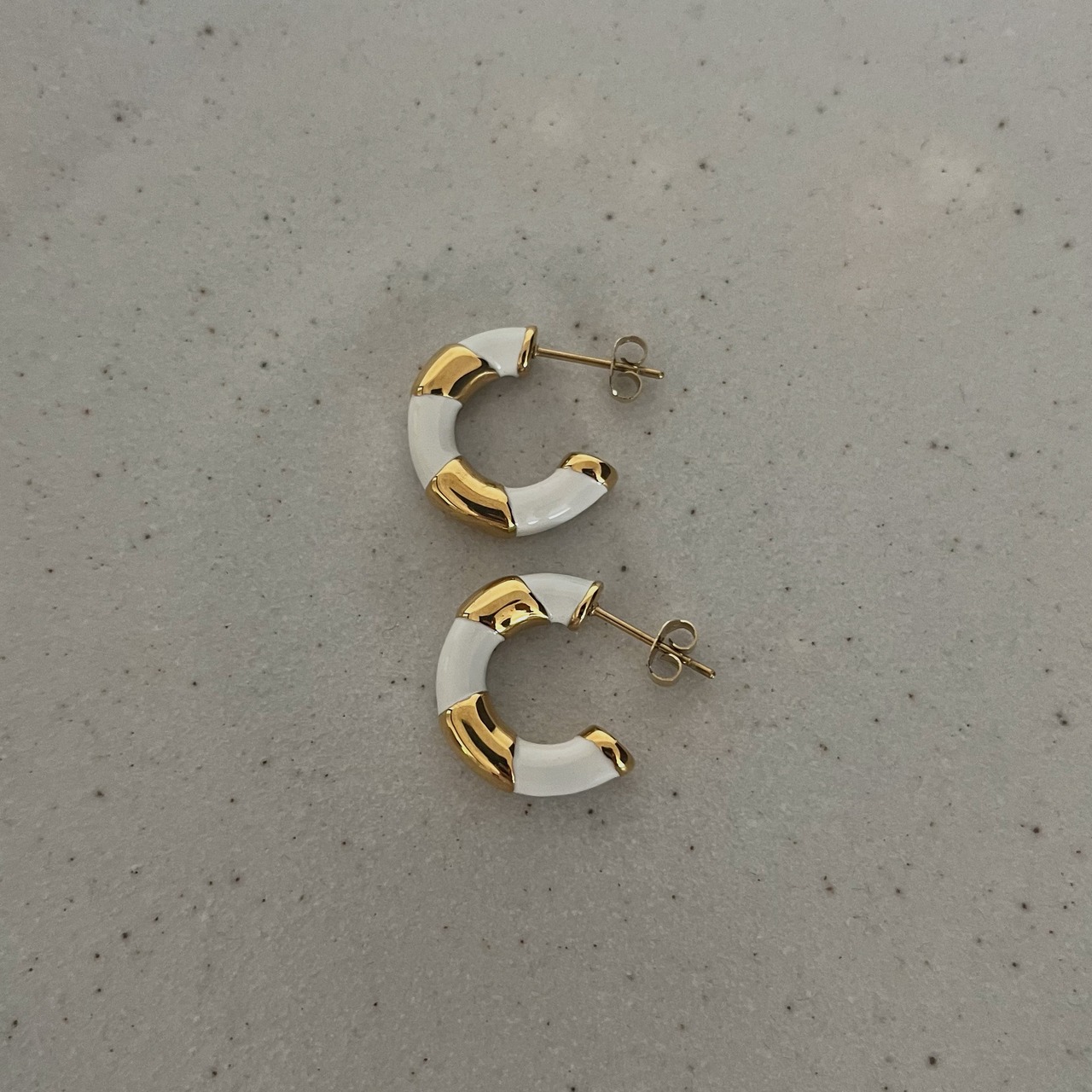 WHITE&GOLD EARRINGS / GOLD [STAINLESS STEEL]