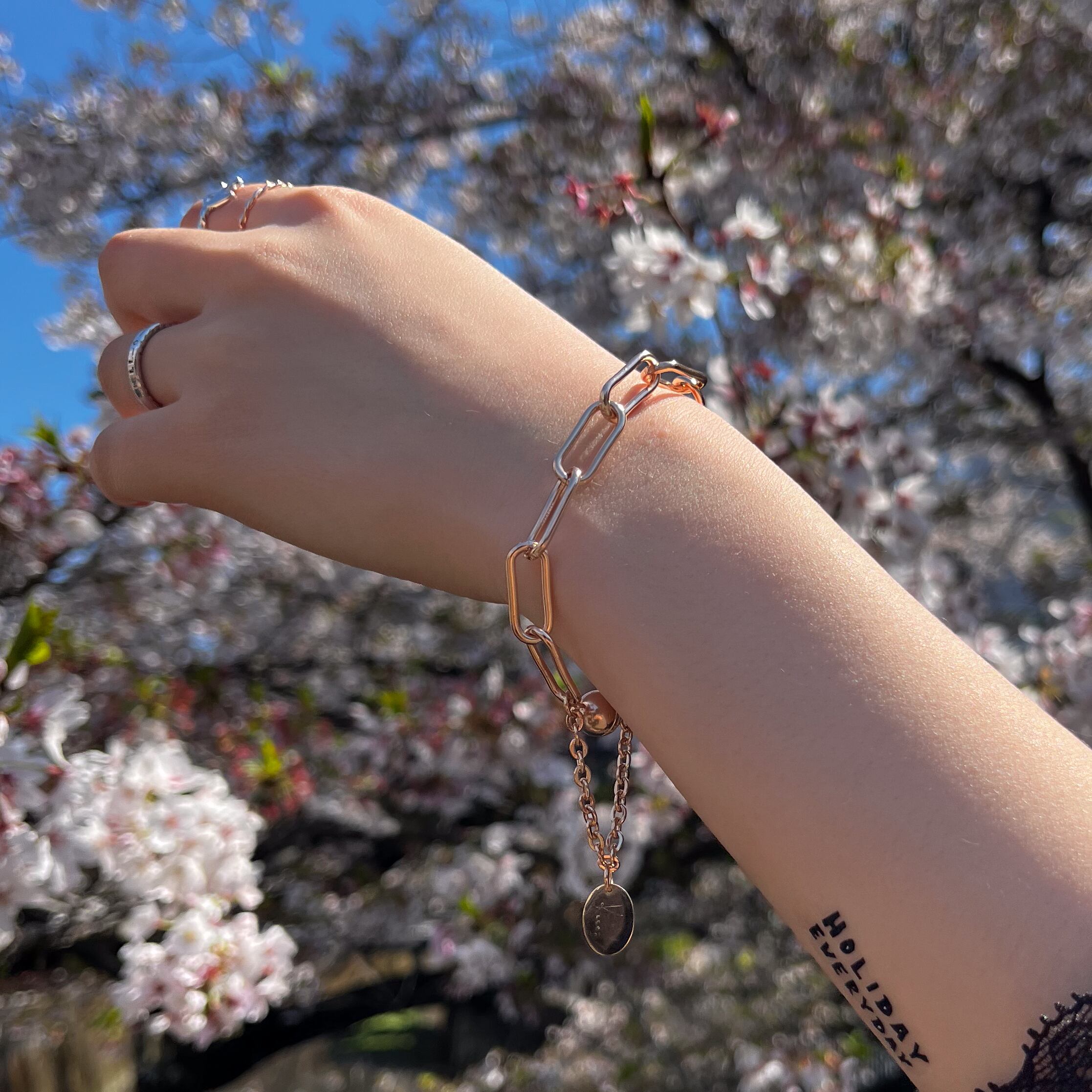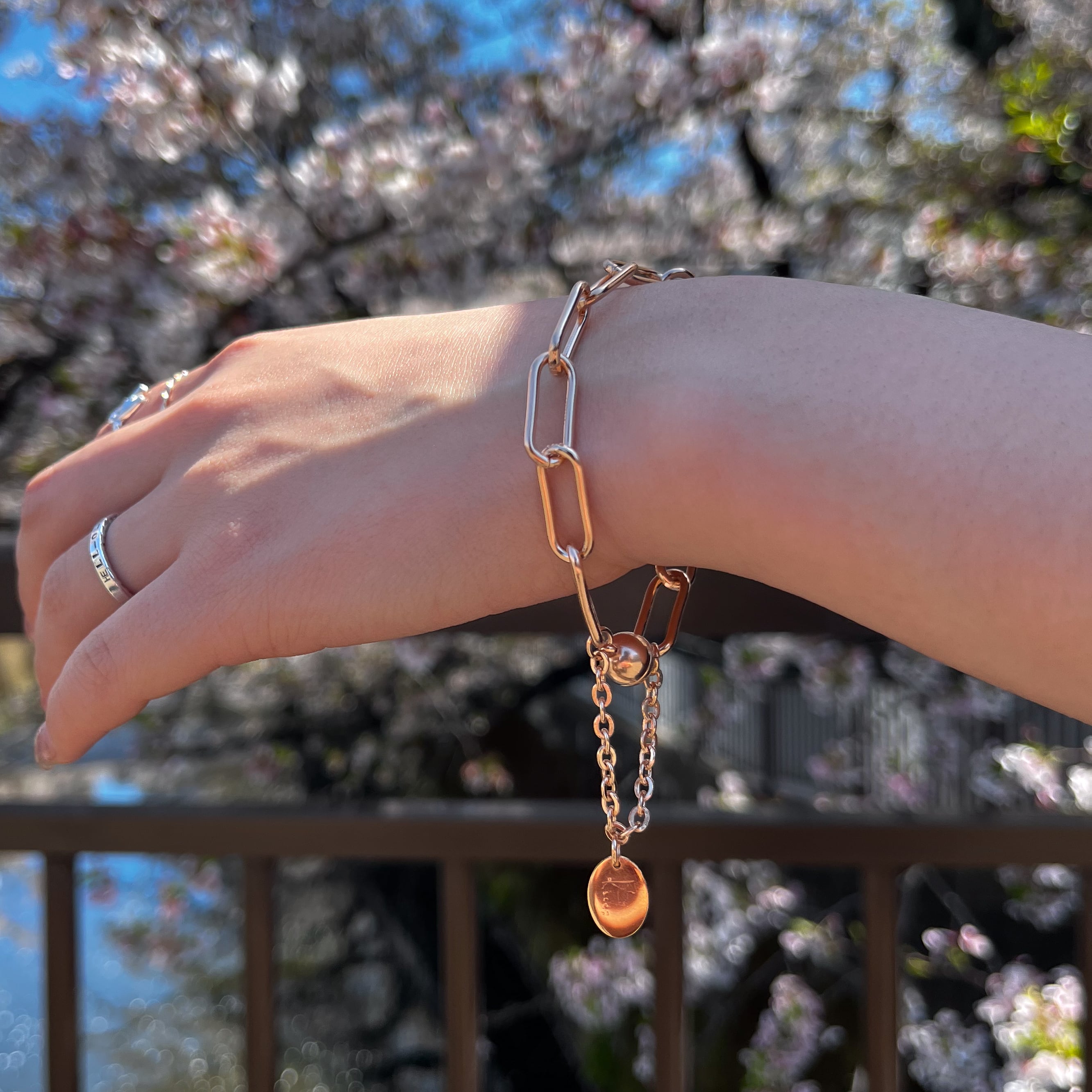 ・サージカルステンレを使用した、ピンクゴールドのチェーンブレスレット。