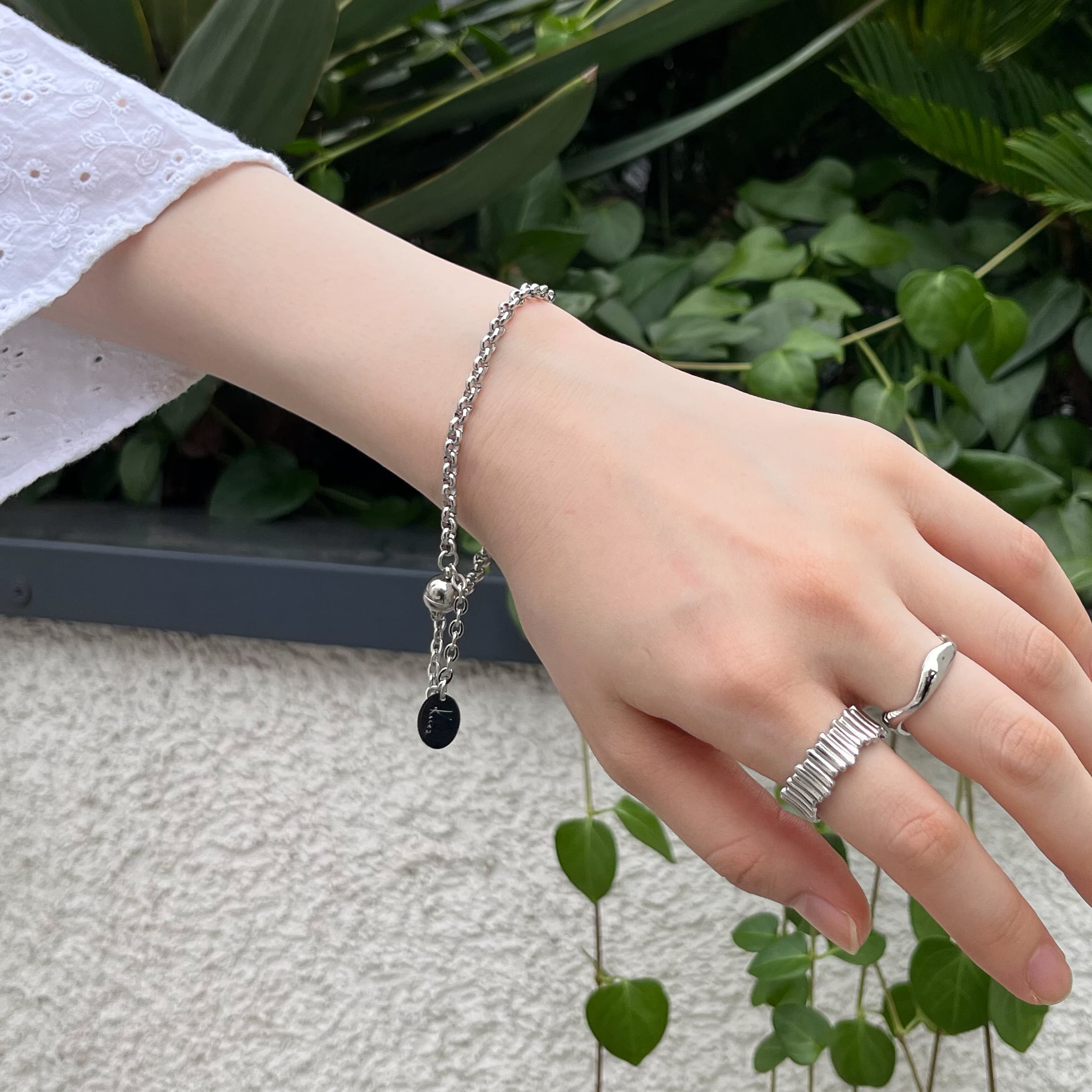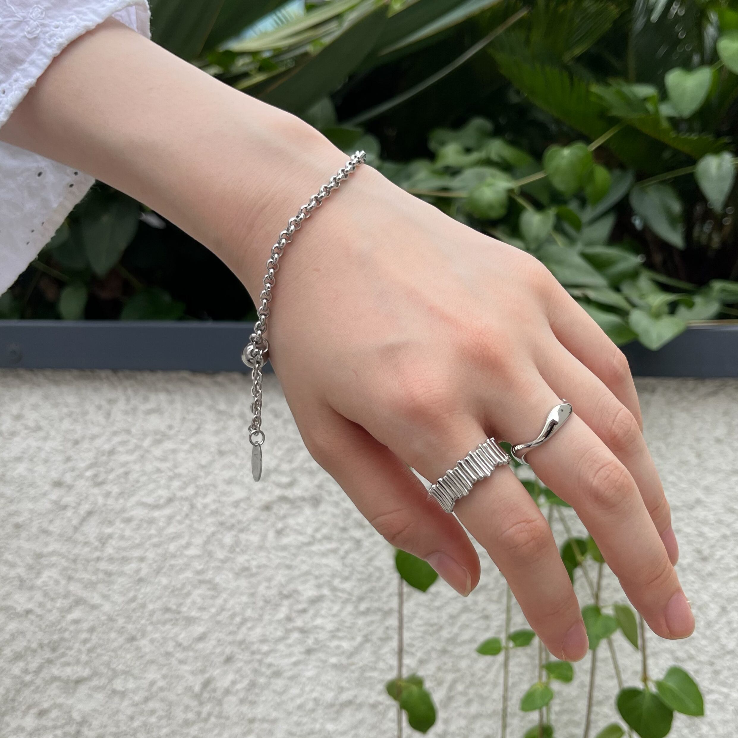 ・サージカルステンレを使用した、シルバーのチェーンブレスレット。