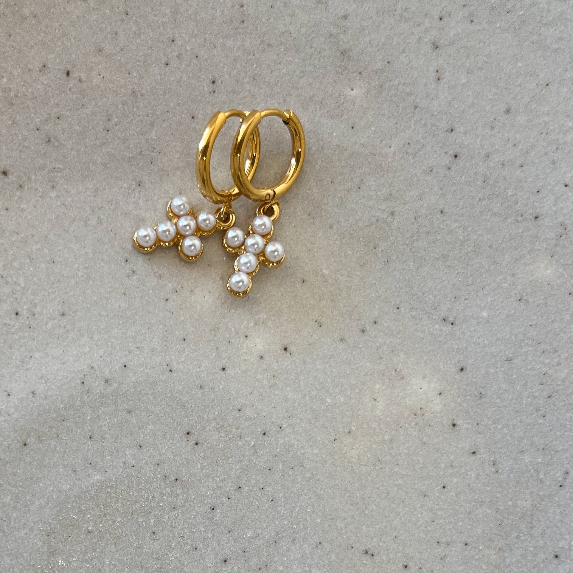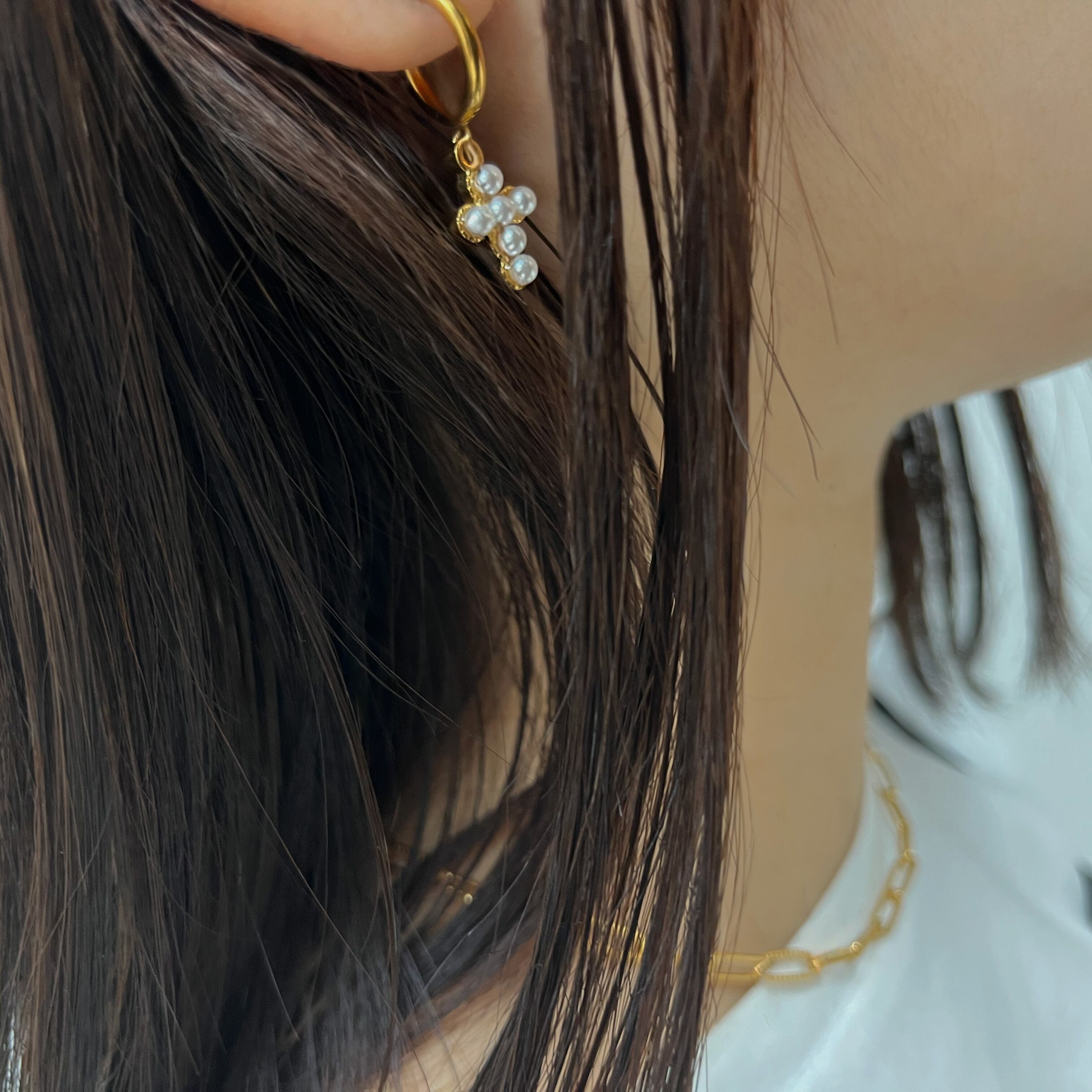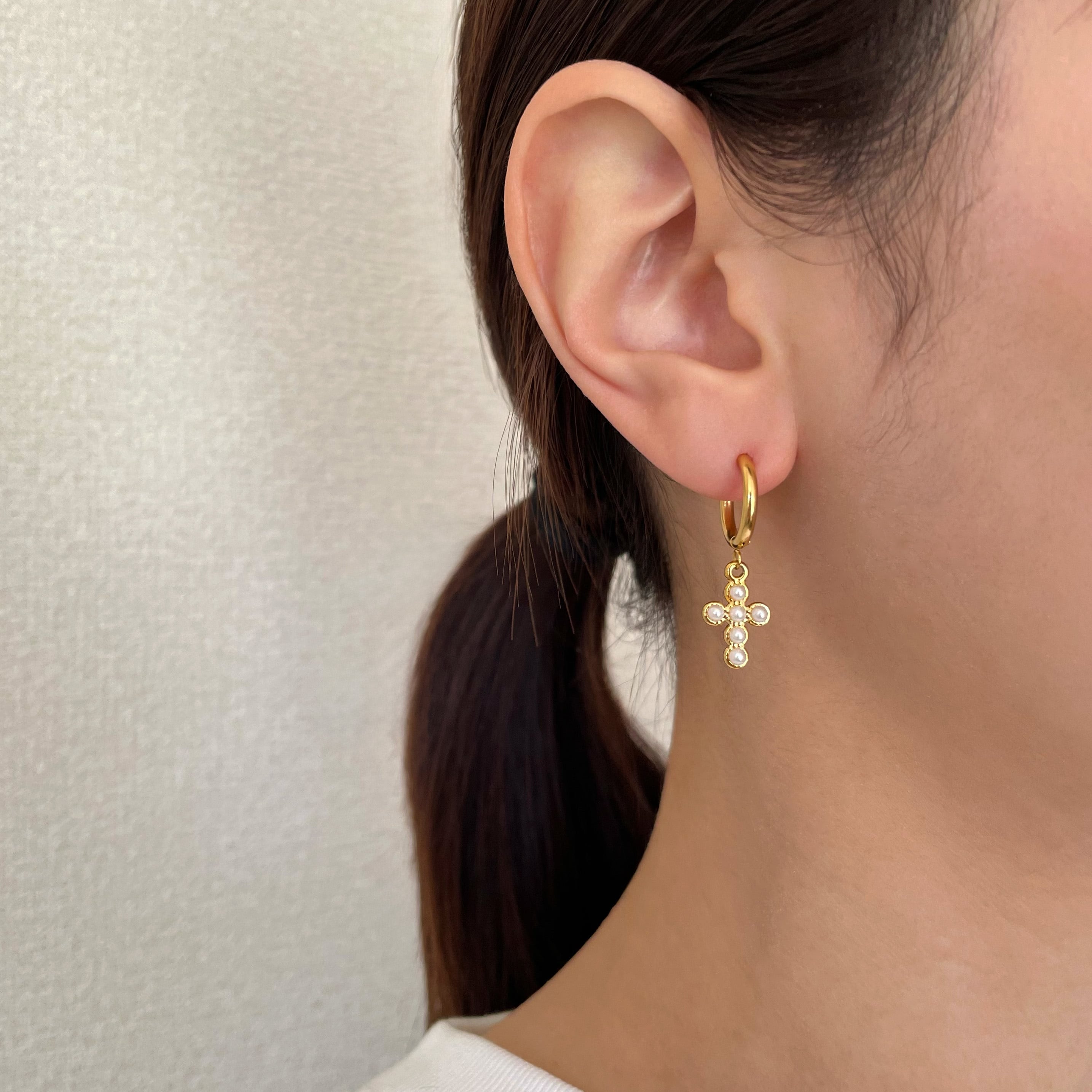 CROSS PEARL EARRINGS [STAINLESS STEEL]
