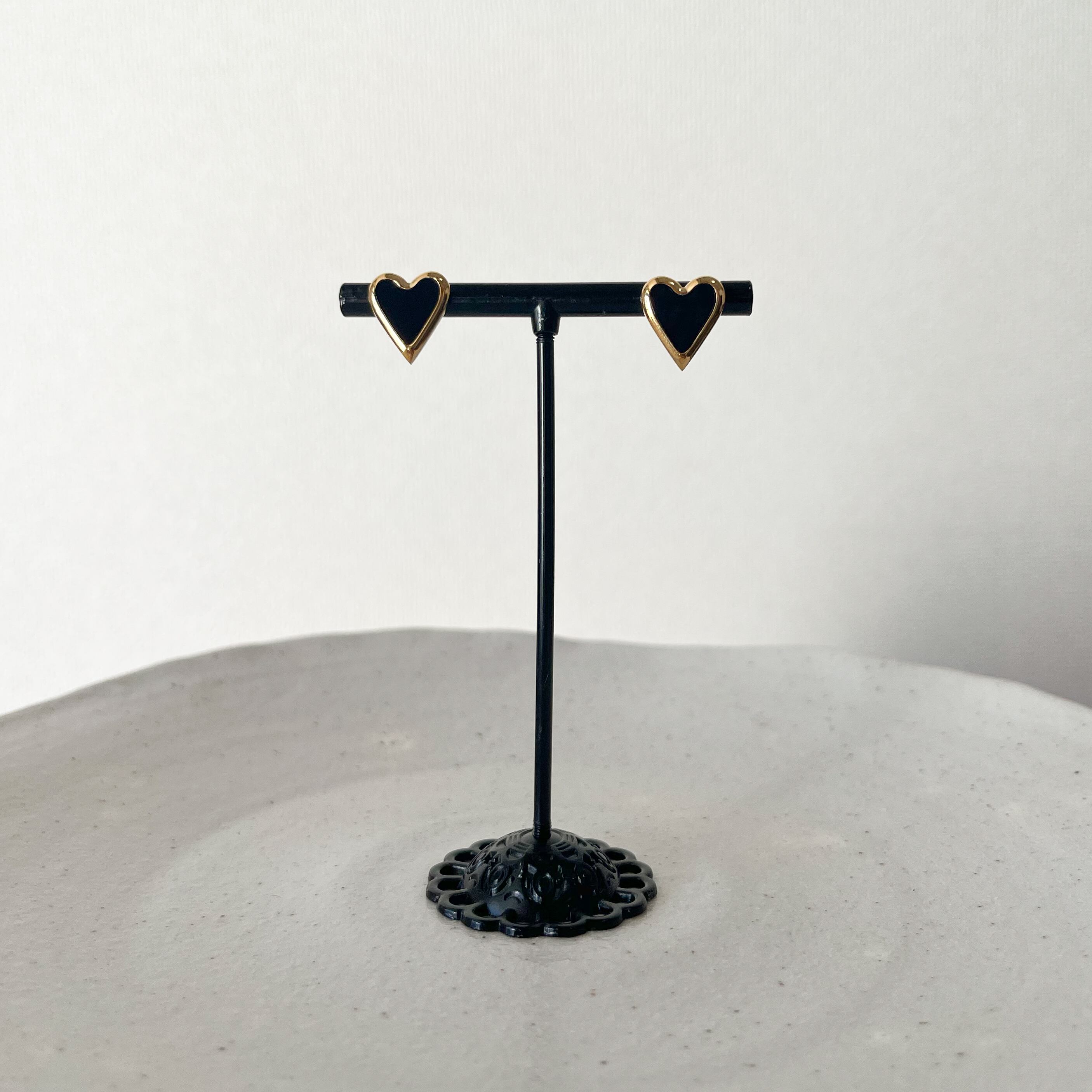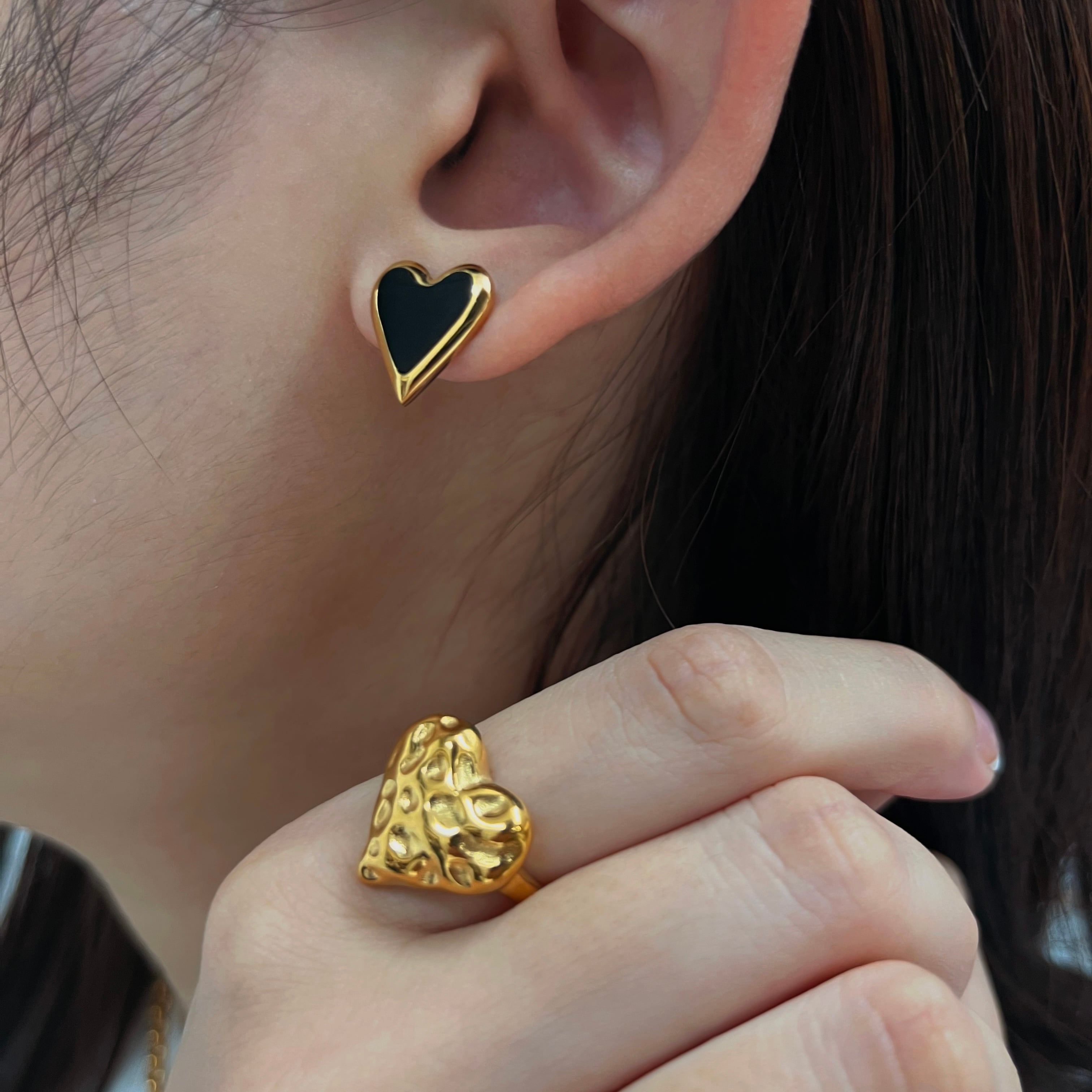 BLACK SHELL HEART EARRINGS[STAINLESS STEEL]