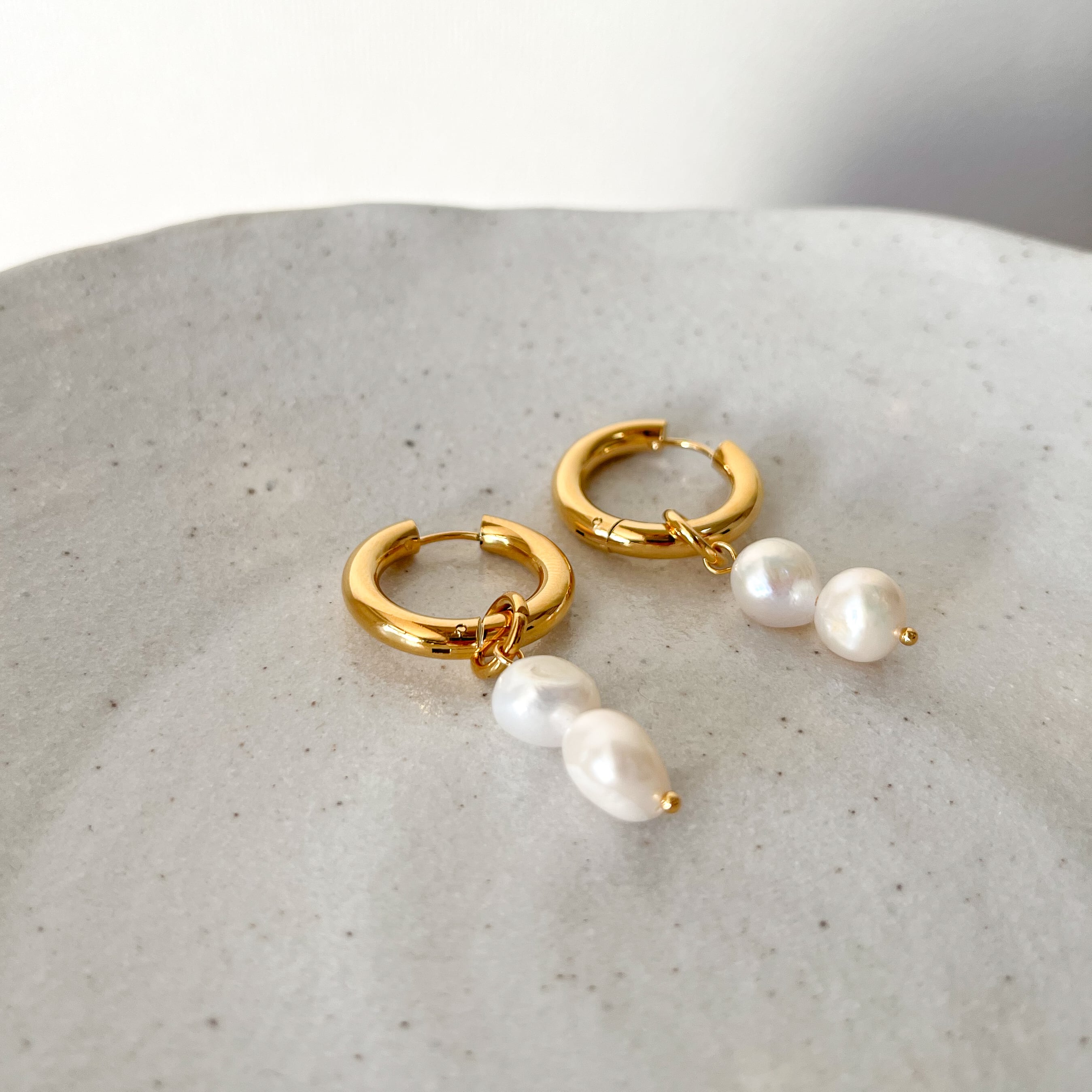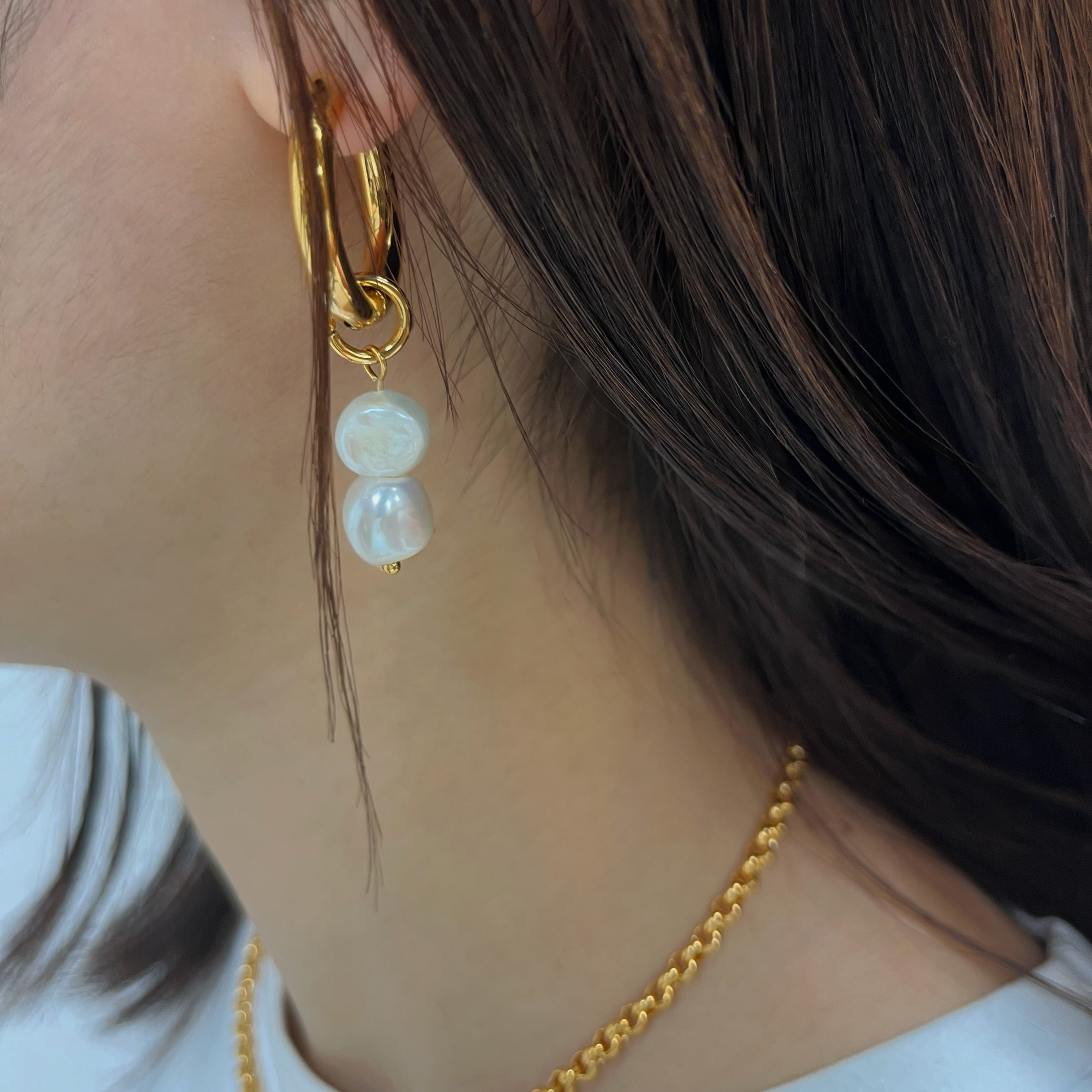 PEARL HOOP EARRINGS / LARGE [STAINLESS STEEL]