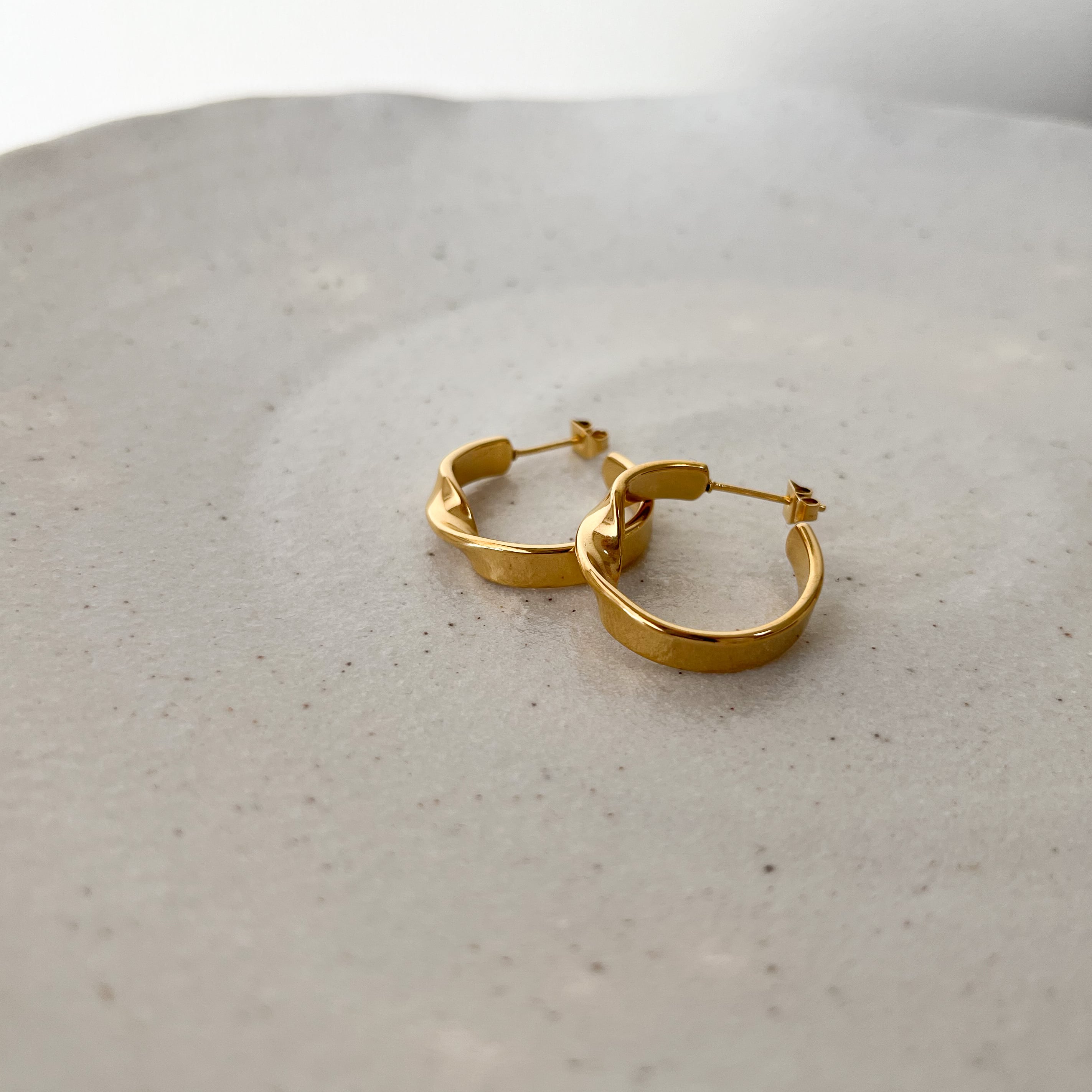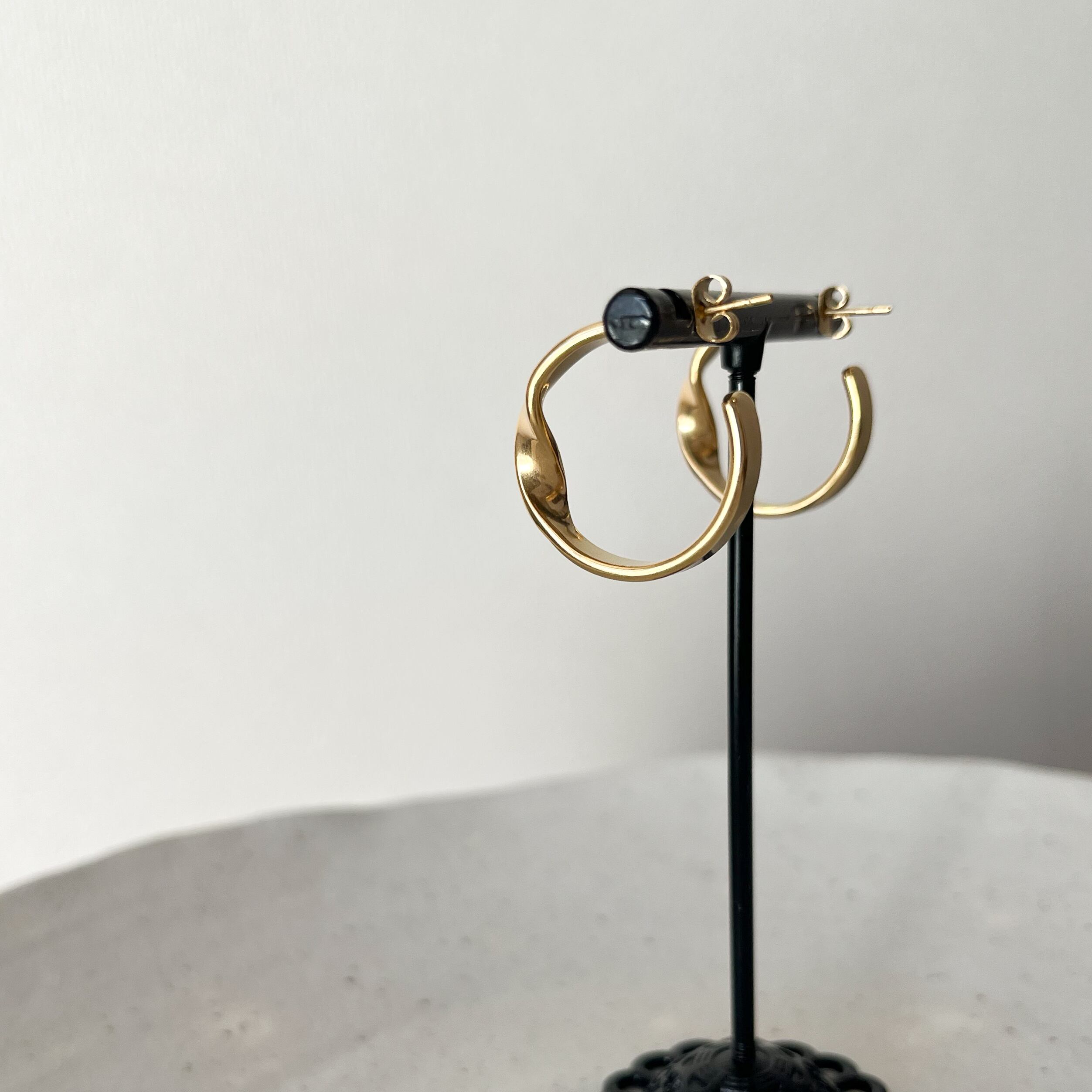 GOLD TWISTED HOOP-LOOK EARRINGS [STAINLESS STEEL]